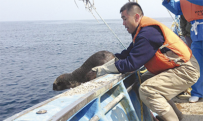 西湘バイパス国府津インター付近の海岸で保護されたオットセイが4月5日、海に戻された。オットセイは3月8日に保護された時、外傷は見られなかったが衰弱がひどく、新江ノ島水族館で人馴れしないよう配慮しながら療養させた。当初、7kgだった体重も11・5kgに増加。体力も回復したため宮城県沖約18Kmで放たれた。現在仙台湾でオットセイの群れが確認されていることから放獣先に選ばれたという。
