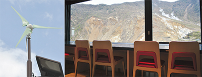 1年ほど工事が続いていた箱根ロープウェイの新大涌谷駅舎(地上2階・地下1階)が24日にオープンした。昭和30年代に造られた先代駅舎を総工費約10億円で建て替えたもので、1階には土産店、2階には大涌谷の絶景を望む「大涌谷駅食堂」を備える。1日平均5千人が乗降する同駅には外国人観光客も多く、案内は中国語の簡体字や韓国語など5通りで表記。給湯器付授乳室や子供用トイレもあり、家族連れにも配慮した。