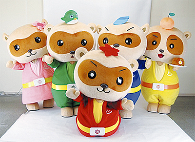 湯河原町のマスコット「ゆたぽんファイブ」の着ぐるみが完成、2日・3日に開催される「やっさまつりパレードで披露される。熊本の「くまモン」の着ぐるみなどを手掛けてきた宮崎県の企業に発注していた。ゆたぽんは1年半前、町広報誌の600号を記念して生まれたキャラクター。湯河原が好きなたぬきの変身後の姿で、頭には紅葉やサーフボード、みかんといった町を象徴するアイテムを載せている。これまで町の広報紙などに登場してきた。町ではさらにゆたぽんをPRするため、今年の夏は袖に入れたポロシャツ全10色約450枚を製作し、10月末までのクールビズ期間中に職員が着用することになった。町秘書広報室では「今後は、ゆるキャラグランプリや町外のイベント参加なども視野に入れたい」と話している。