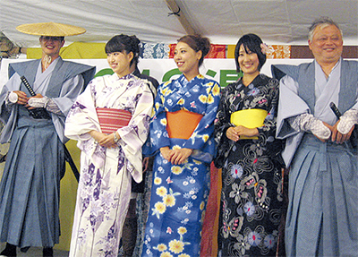 箱根湯本観光協会が27日に、箱根大名行列の「奥女中」コンテストを湯本で開催した。腰元たちを束ねる役で、11月3日の行列本番ではお姫様的な存在として約6キロの道を練り歩く。会場には書類選考でしぼられた数人が登場。湯本女性会の広枝三千ル会長や箱根湯本芸能組合の舘美喜子組合長など審査員たちが選んだのは、町内在住で宿泊施設で働いている鈴木綾子さん=写真中央だった。腰元の先頭役(2名)は、横浜在住の西島里恵さん=左側、小田原市在住の橋場有佳さん=右側が選ばれた。