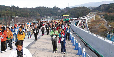 国交省が工事を進めていた「東駿河湾環状道路」(長さ約16Km)が、来年3月末までに伊豆縦貫道と接続する。開通後は東名高速と伊豆をつなぐ観光の大動脈になり、山に囲まれている函南や熱海への観光振興も後押ししそうだ。国交省は渋滞解消などで15億円の経済効果を見込んでいる。 「東からの誘客を意識するのも大事だが、県レベルで西からの誘客に取り組んでほしい」。湯河原の冨田幸宏町長は19日、県会議員たちを前に要望した。東駿河湾道の一部は4年前に塚原ICまで開通。湯河原パークウェイ(有料)経由で湯河原と東名ICとの距離は縮まったものの、アクセスの良さは広く知られていない。要望は西の端の湯河原というよりも「神奈川の西の玄関口」としての意見だった。接続後は箱根〜修善寺、伊豆長岡の時間も縮まり、箱根伊豆の周遊がしやすくなる。函南や三島では年明けにかけて開通イベントの連続だ。今月17日には道路の高架部をウォーキングする「空中散歩」が1万2千人で賑わった。12月15日には環状道路でのマラソン大会(10キロコース)を予定。供用の直前も本線を使った富士山眺望ウォークと三島函南での物産展を開き、開通を盛り上げる。