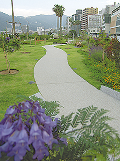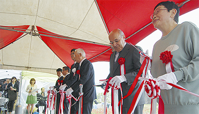 国道135号線沿いの熱海・お宮緑地に6日、全長430mの遊歩道が完成した。沿道には青い花を咲かすジャカランタの苗100本が植えられ、早咲き桜や梅園に次ぐ熱海の新名所になりそうだ。ジャカランタは24年前、姉妹都市のカスカイス市(ポルトガル)から贈られ、緑地内にはそのうちの1本が育つ。当日はジョゼ・デ・フレイタス・フェラース駐日ポルトガル大使や、熱海に住む脚本家の橋田壽賀子さんなども加わり、テープカットした。整備を後押ししたのはホテルニューさがみや(伊豆山)の創業者・大塚実名誉会長による多額の寄付。大塚さんは旅行の時にポルトガルで見たジャカランダの美しさに刺激され、遊歩道の構想を膨らませたという。大塚さんは出席者たちに対し「観光地熱海をナンバーワンにしてほしい。頼みますよ」とエールを送った。