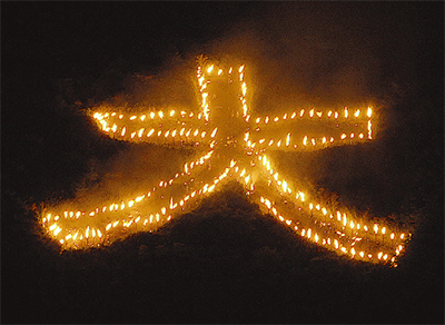 箱根強羅の一大イベント・大文字焼が8月16日に点火される。宮城野青年会のメンバーが明星ヶ岳に登り、乾燥した竹を束ねて横幅108mもの巨大な「大」を立て、夜7時半に一斉点火する様は圧巻。