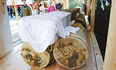 報徳二宮神社(草山明久宮司)に今春、伊勢神宮から譲り受けた古材を利用して新たな鳥居が建立される。同神社はこの機会に日本の文化について親しんでもらおうと、製作にあたって市民の参加も呼び掛けている。鳥居の新設は、昨年に創建から満120年を迎えた記念事業の一環として行うもの。これに際して、一昨年に伊勢神宮で執り行われた式年遷宮の古材を活用しようと、譲与を申し入れていた。小田原城址口に新設される鳥居は、高さ4・2m、幅5・6m。製作には小田原地区木材業協同組合や小田原林青会、地元の大工らがあたり、4月上旬頃の完成を予定している。また、多くの人に神社や木の文化に親しんでもらう機会にしようと、同神社は「みんなの鳥居プロジェクト」を企画。2月下旬まで境内に古材を展示するほか、鉋がけなどの作業に参加する市民も募っている。草山宮司は、「神社と木の文化は昔から深い関係がある。小田原や足柄は、昔から寄木や木工業が盛んな地域。かつて二宮尊徳翁が『徳』という言葉を使ってその土地の長所を引き出したように、この事業を郷土の良さを再認識してもらう機会にしてほしい」と話している。製作作業は1月18日、25日、2月15日、22日の日曜日に開催。小学生以上が対象で、所要時間は各回約2時間半。作業内容は開催日により異なる。参加費は各回千円(奉納札付き)。要事前予約。