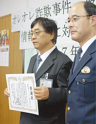 箱根登山ハイヤー(株)が27日、オレオレ詐欺事件の情報提供で小田原署から感謝状が贈られた。