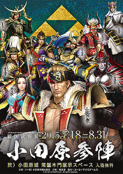 小田原城天守閣耐震等工事による観光客の減少を緩和するため、市観光協会は戦国ゲームの武将画を集めた「戦国武将展『小田原参陣』」を開催する。本日7月18日(土)から小田原城常盤木門展示スペースで、午前10時〜午後4時(最終入場は3時30分)。8月31日(月)までを予定。入場無料。