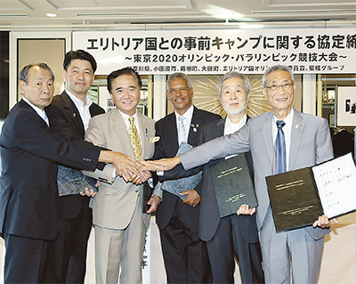 2日には横浜市内のホテルに同国オリンピック委員長のメハリ・テスファイ氏や黒岩知事、山口箱根町長らが集まり、キャンプの協定書を交わした。
