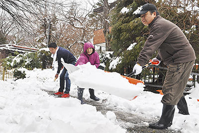 メンバーが向かったのは、仙石原の高齢者宅。道路から玄関先までの道のりは分厚い雪が覆っていたが、3人が大型スコップを振るうと30分ほどで細い道が完成。仕上げに凍結防止剤をまいた。メンバーの小賀野浩美さん(仙石原)は「もてあます体力を活用してます。必要なモノもないから」と笑顔で雪を放っていた。 この活動は町社協が「特別な資格もなく誰でも参加できるボランティアを」と2年ほど前に企画。今年は中学生を含む6人がメンバーに登録している。除雪の対象は障がい者や高齢者など除雪できない理由がある人で、今回の依頼者(女性)は以前心不全になった事もあり、道の半分を除雪するので精いっぱいだったという。「無理して入院するのも困るからお願いしました。助かる。本当にありがたい」と話していた。