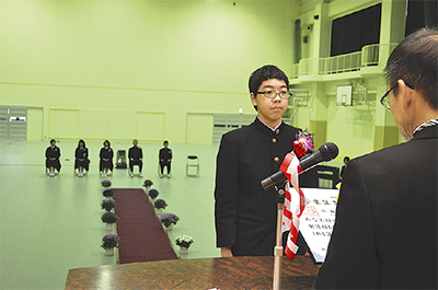 湯河原町の隣、千歳川を挟んだ熱海市泉の中学生6人が18日に卒業式を迎えた。泉地区は小中学校が併設され、卒業生たちは約9年間をこの地で過ごした。来月から熱海高校や韮山高校など山の向こうに通い始める。クラスのテーマは「存在意義」の4文字で、自分たちが社会のために何ができるかを問うものだった。担任の高坂臣さんは「誰もが行事で1人3役、4役をこなして鍛えられてきた。どこに行っても行動できる」と太鼓判を押す。式典では榎本陽香さんが代表して惜別の言葉を述べ「もっと皆と過ごしたい思いがこみ上げる」「困難は乗り越えれば自分の力になる」と言葉をしぼり、涙を拭っていた。