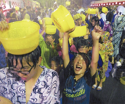 湯河原温泉を大名家や御用邸に献上した歴史にちなんだイベント。5基の神輿が湯を浴びて練り歩く様は圧巻。午後7時ごろに不動滝付近を出発、沿道には約60トンの湯を注いだ樽がずらりと並び、観客が待ち受ける。カメラは耐水性のものがお勧め。