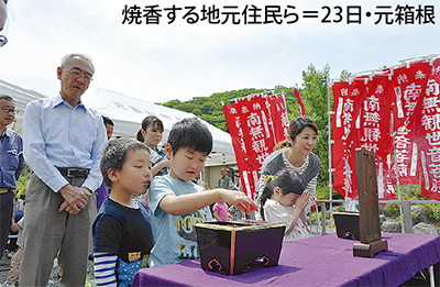 314年前に関所破りの罪で処刑された「お玉さん」を偲ぶ法要が23日に元箱根のお玉観音堂で行われ、地元住民や箱根幼稚園の園児など36人が手を合わせた。