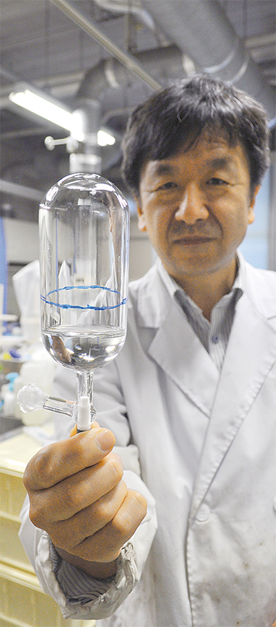立ち入り制限が続く大涌谷で、大地に聴診器を当てるようにガスの変化を探る人がいる。東海大理学部の大場武教授は15年前に研究に着手し2013年から毎月のように噴気区域(大涌谷・上湯)に通い、地面の穴にパイプを挿してきた。ガラス容器に集めているのは大気に吹き出る直前のガス。水蒸気や硫化水素、二酸化硫黄などが含まれており、地下水が下から湧き起こる「マグマ性ガス」と混ざることで生まれる。地下500m〜1Km付近で起こる現象だ。