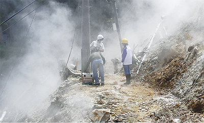 大涌谷で調査に汗東海大理学部・大場武教授(55)