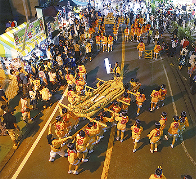 御殿場駅近くの浅間神社で、7月9日(土)に「わらじ祭り」が開催される。特製大わらじに人を乗せて約240mを引きずる「わらじ競走」は午後4時〜6時。ユニークな衣裳やパフォーマンスを競う部門も見逃せない。午後6時からは、未婚女性20人が担ぐ長さ約3mの「大わらじ」が2基登場し、練り歩く。観光協会によると「担いだ女性には不思議と素敵な男性が現れ、良縁に恵まれる」という。祭りは御殿場が昔わらじの産地だった事にちなんで昭和40年代に始まり、中断を経て5年ほど前に復活した。詳しくは観光協会【電話】0550・81・5110