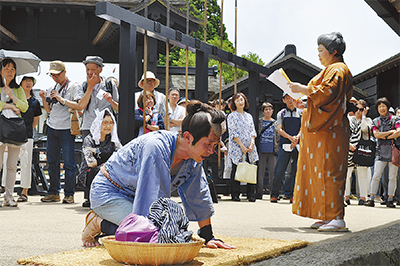 箱根関所が26日、江戸時代を再現した生々しい芝居で盛り上がった。一昨年から劇団・湯たんぽが上演している創作劇で、今回で6作目。代表の石黒重成さん(43)はリアリティを追求するため、関所資料館の文献などを読み込んで脚本を書いたという。物語は怪しげな旅芸人が主役。「あっしはただの…」と関所の通過を願い出て土下座するも役人の人見女(ひとみおんな)に留められ、仕方なく持前の芸を披露する―という内容だった。