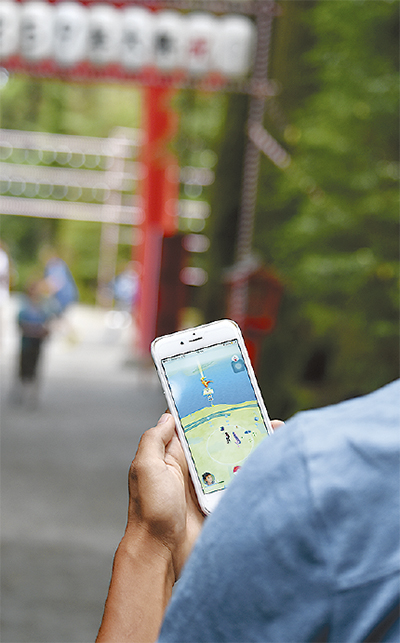 モンスターを捕まえるためにはカプセルが必要で、スマホが地図上で示す「ポケストップ」で手に入る。箱根での一つが田むら銀かつ亭(強羅)の灯籠だ。ゲーム運営会社から同店に事前連絡はなく、24日頃を境にアイテムを求める人が訪れるようになったという。通りすがりの女性(宮城野在住)はスマホを手に「対戦してて、疲れちゃった」と汗をぬぐった。