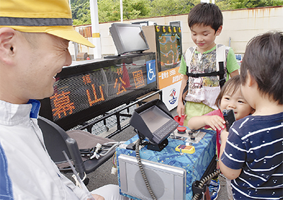 箱根登山バスフェスタが3日に箱根・宮城野で開かれ、バスファンや親子連れで賑わった。会場では洗車見学や、電光表示に名前を出すコーナーを開設。車内放送体験には行列も。子どもたちは少し恥ずかしげに「次止まります」「終点です」とつぶやいていた。体験装置は今回のために整備工場のスタッフが作ったオリジナル。ボタンを押すと出発や終点の放送が流れる仕組みで、行先や経由別に約400通りの組み合わせが放送可能だ。横浜市から訪れた熊谷奏汰君(5)は「面白かった。ここに来るために朝6時に家を出ました」と笑顔で話していた。