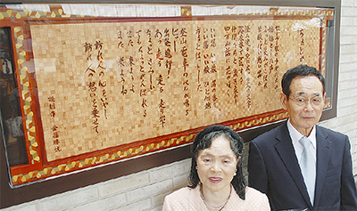 箱根町民歌「和む光の」を作詞した戸上寛子さん(81・強羅在住)が、詩編「ちょっとがんばれる」の詩碑を登山鉄道に贈った。地元愛を刻んだ特注の寄木細工パネルは強羅駅で除幕され、観光客の視線を集めている。