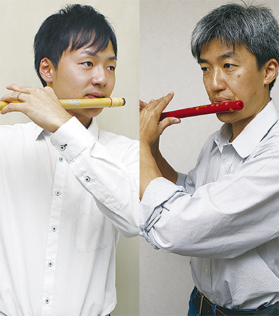 興行収入145億円を超えた大ヒット映画『君の名は。』に、小田原市在住の岸健太郎さん(44)と小田原市役所に勤務する島田礼二さん(26)が音の出演を果たしていた。2人は中井町出身。作品の映画音楽プロデューサーを務める成川沙世子さんも同郷で、3人は幼いころから地域の囃子保存会で太鼓や篠笛を演奏していた。成川さんの提案により保存会の祭囃子が劇中使用されたという。