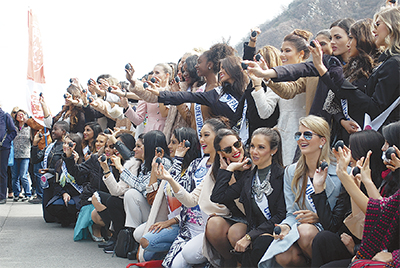 都内で世界大会が開かれた「ミスインターナショナル」の各国代表が24日に大涌谷を訪れ、絶景と美女のコラボを撮ろうとメディアや観光客が集まった。