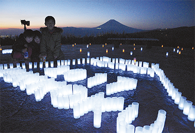 十国峠ケーブルカーで3月18日まで毎週土曜日に開催されているトワイライト運行が、人気を呼んでいる。頂上の十国峠駅前にはキャンドルが星空のように散らばり、その先に沼津や三島の夜景、天気が良ければ夕焼けと富士のシルエットが見える。下山最終時刻は午後6時20分。車内でも夜景を楽しめるよう、電気を落として運行している。
