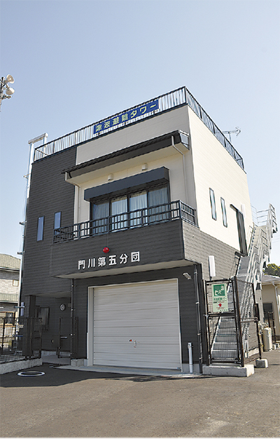 湯河原町門川地区に、このほど町内初の津波避難タワーが完成した。以前は第五分団の古い建物があった場所で、町が約7200万円でタワーや避難所、分団の機能を併せ持った建物として新築した。