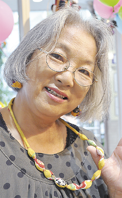 そこで、手芸が得意な額田さんはハンカチを筒状に縫い、その中に洗って1週間ほど天日干しにした種を入れた。種と種の間を布の上からビーズなどで止めてアクセントに。30分ほどで完成するという。また、梅干しの種を割ると「天神様」と呼ばれる核があることから「ネックレスにして身に着けることで、守ってもらえたら」と額田さん。将来は「小田原土産の一つになれば」。現在は、所属する手芸グループ「ミモザ」の展示会などで販売している。