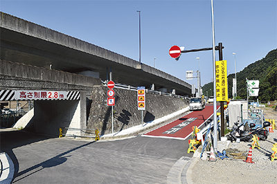 小田原箱根道路から箱根湯本・山崎地区に降りるための出口(オフランプ)が9月11日に開通し、わずか4日後に閉鎖され、現在も通れない状態が続いている。小田原箱根道路は小田原厚木道路や西湘バイパスと箱根新道をつなぐ区間を指す。この出口は地域住民の利便性向上のため設けられた道だが、一帯は住宅街で細い町道が多い。開通後に箱根新道を目指す大型車が誤って下りてしまう事例が発生、安全確保の要望も寄せられたため、閉鎖を決めたという。横浜国道事務所では今後舗装の色をより鮮やかに変え、箱根新道へ誘導する矢印表示を路上に明示する予定。「すみやかに開通させたい」としている。