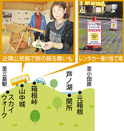 小田原〜三島の箱根旧街道を盛り上げようと、国交省が11月26日まで初の社会実験を行っている。三島からのバス便の増強や三島からのレンタカーの乗り捨てを加え、観光地箱根の西隣にも光を当てた実験だ。