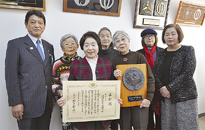 冨田町長は町長就任後、同会の活動を知った事を機に、町広報が録音でも読みやすくなるよう漢字のルビを徹底、「障害者」表記を「障がい者」に統一した経緯を振り返った。室伏代表は「目立たず気張らず、末永くを心掛けている。1月で40周年、いい記念になった」と笑顔を見せていた。