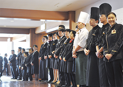 藤田観光は全国各地でホテルを運営しているが、転勤せずに長く箱根で働き続けた人も数多い。20年にわたり予約やフロントなどを担当した横山直樹さん(46)は、見送りに立ちながら「まだ最後という実感がわきません。仕事人生のほとんどを過ごし、このホテルに育てられました」。宴会場で働く小暮喜美代さん(69)は「外国人のお客さんと話せなくて、それでも笑顔で気持ちが通じた時は嬉しかった」と涙をぬぐっていた。