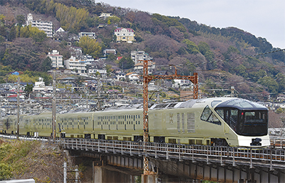 JR東日本の豪華寝台列車「トランスイート四季島」が12月31日に初めて営業運転で”四季彩のまち”湯河原を通った。上野から熱海に向かいMOA美術館を鑑賞、横須賀方面に折り返し、千葉の和田浦(初日の出)や茨城の鹿島神宮に向かうルートで、1泊2日料金は45万円〜65万円だった。湯河原町鍛冶屋の高台では、三脚を構えた10人ほどの鉄道ファンがシャンパンゴールドの車体に向かってシャッターを切っていた。