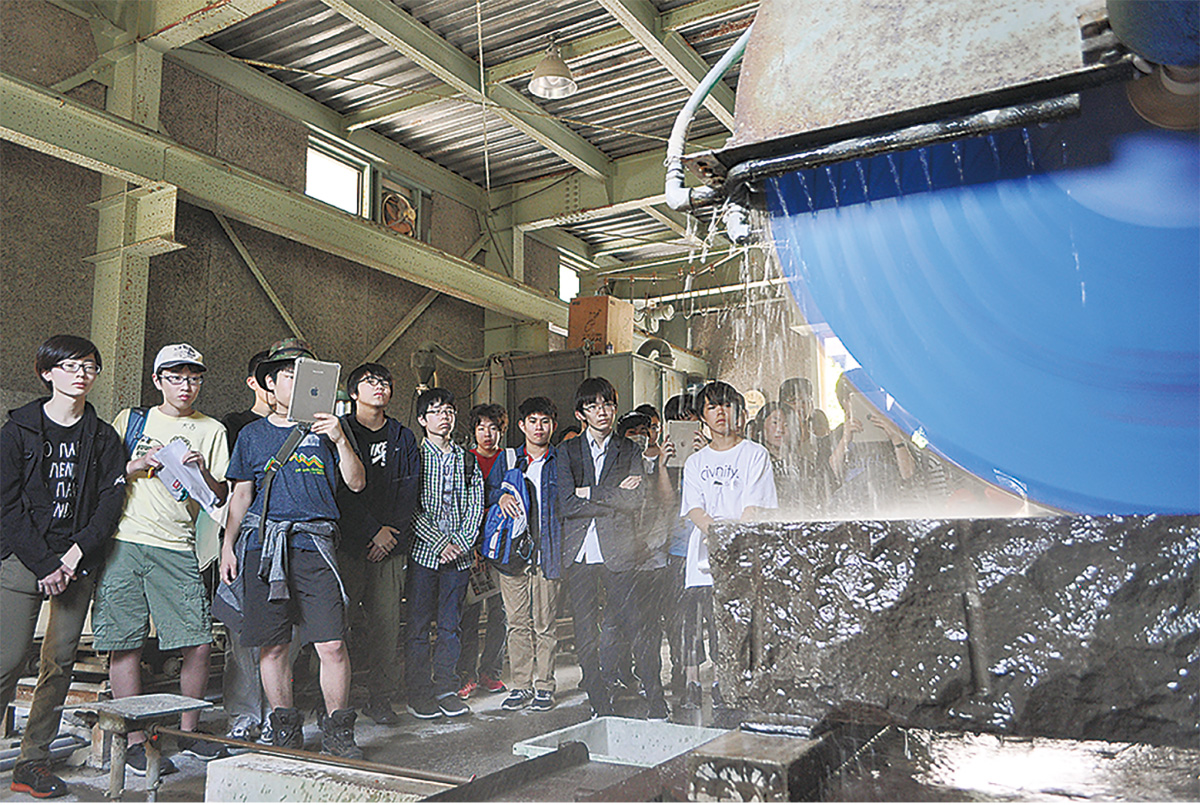 工場では石の切削機や穴あけ機を体験したほか、真鶴の採石場(青木一雄石材店)にも足をのばした。壮大な本小松石の切り出し現場を前に、青木太成社長は年間2万トンにおよぶ産出量や、昭和初期まで人力で掘り出していたエピソードを解説した。参加した中兼聖人さんは「手作業の世界と思っていたが意外と機材を活用していた。この点を人材募集時に打ち出せば、若手が集まりやすいのでは」と話していた。