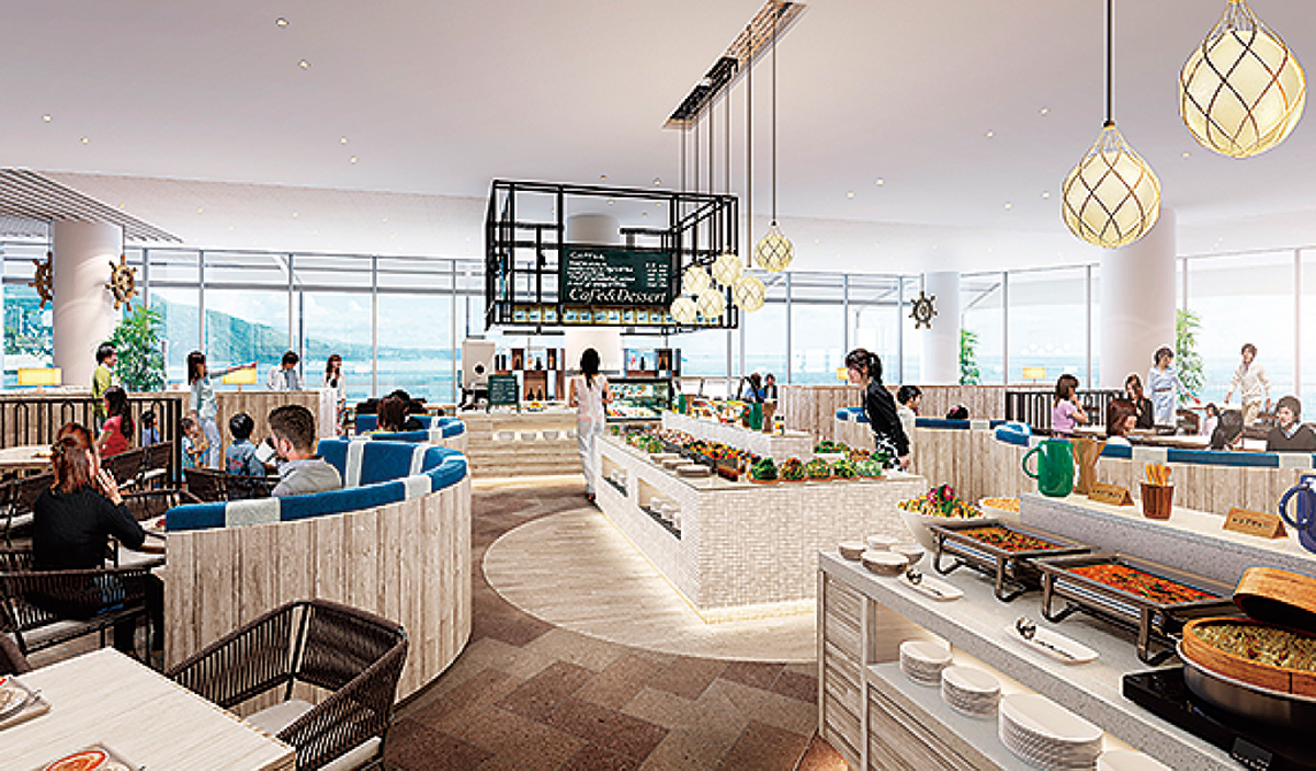 現在営業中のタワー棟(客室数89)の隣に建設中の新館は、新しい100室を擁し、今の2倍以上の部屋数となる。また海を一望する日帰り温泉の名前は「オーシャンスパFuua(フーア)」とし、夜11時まで営業するほか、入館料は平日大人2500円になる予定。