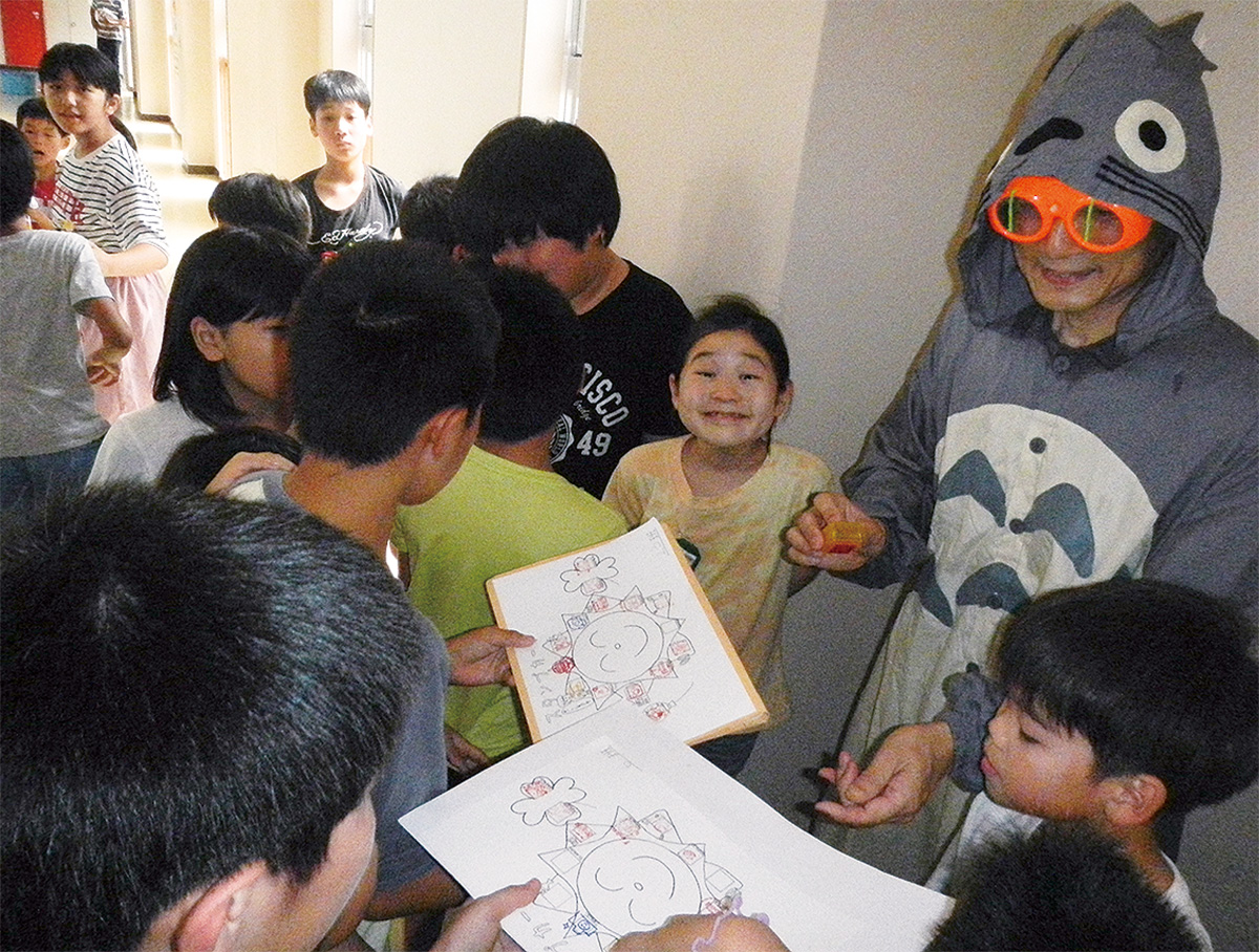 湯河原小学校が6月26日「ほかほかスタンプ祭」で賑わった。様々な学年を交えて24班のグループを作り、校舎をまわってスタンプを集める恒例行事だ。じゃんけんで勝ったり、仮装する先生の正体を当てると、小学校のシンボル「ほかほかくん」のシートに一つ押せる仕組み。グループからはぐれても迷子スペースがあり、仲間が迎えに来る。