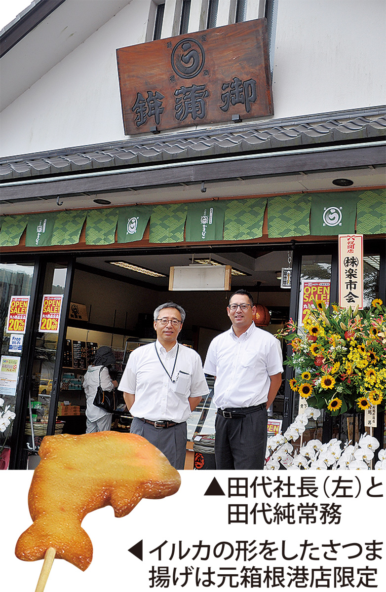 以前は「芦ノ湖まんじゅう」を販売する甘味店の店舗だったことから、かまぼこ店ではめずらしく蒸し饅頭と揚げ饅頭も販売。田代勇生社長は「長年親しまれていたお饅頭の思い出も大切にしたい」と話している。