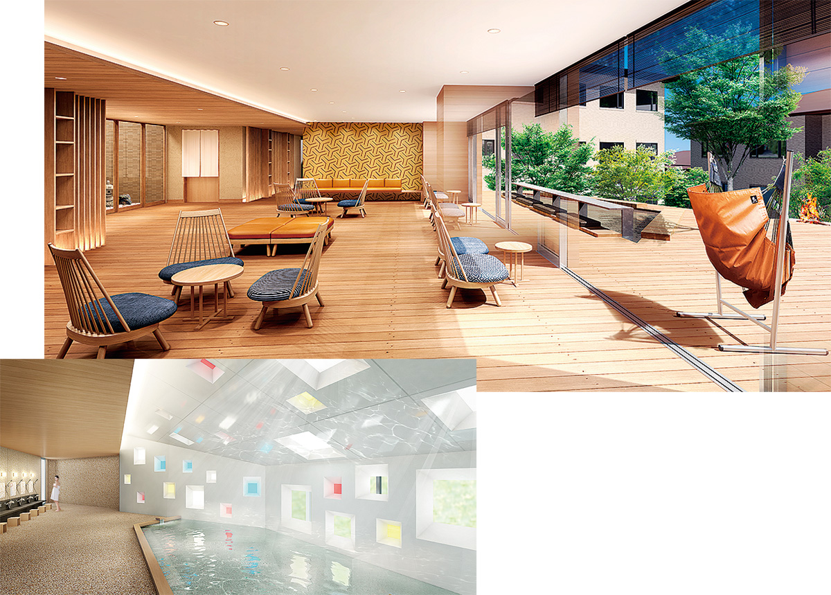 新ホテルへの改装費用は約21億円。ホテル棟(62室)とコンドミニアム棟(10室)に分かれており、中庭には焚き火炉やウッドデッキ、ハンモック、足湯などを設置し、共有エリアでのくつろぎやゲスト同士の交流もコンセプトにしている。宿泊料金は1泊2食付で1万7千円〜、コンドミニアムは温泉ビューバス付きで一部屋2万円〜3万円で、ヤング、ファミリー、女性グループ層を中心に年間4万5千人の利用を見込む。