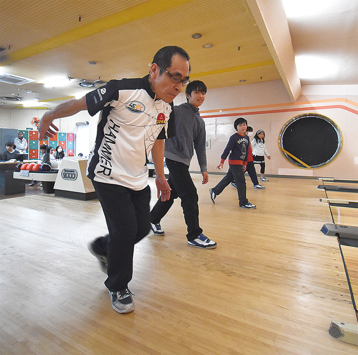 湯河原小の放課後こども教室の児童16人が、パッキーボウル(宮上)で和泉好夫プロ(60)のレッスンを受けた。