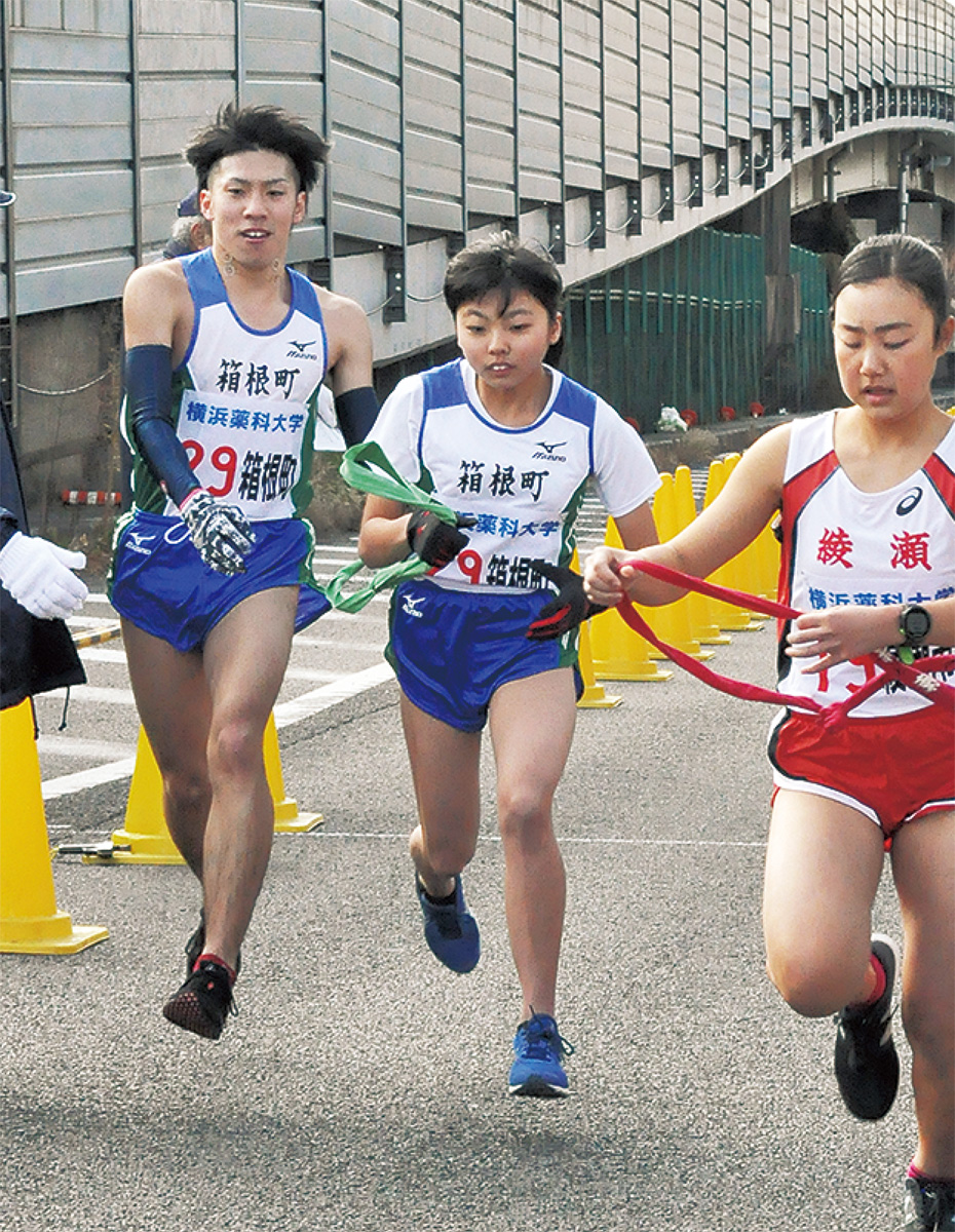第73回市町村対抗かながわ駅伝が、2月10日に開催され、7人のランナーが秦野カルチャーパーク〜県立相模湖公園間の51・5Kmをつないだ。30チームが出場し、川崎市が2時間40分3秒で優勝、町村では二宮町がトップ(総合10位)だった。箱根町チーム(川久保一浩監督)は秦野のスタートを箱根中の細井裕生さんが担い、伊勢原に向かう国道246号線の区間を日体大の大泉將さんが駆けた。田代進さん(下郡陸協)が17位で箱根中の久保美月さんにつなぎ、杉本響佑さん(下郡陸協)、アップダウンの大きい6区は勝俣航希さん(専大)が担当。アンカーの岡田慶一朗さんはトップから約14分差、2時間54分44秒(19位)でゴール。前回記録(13位)の更新は叶わなかった。