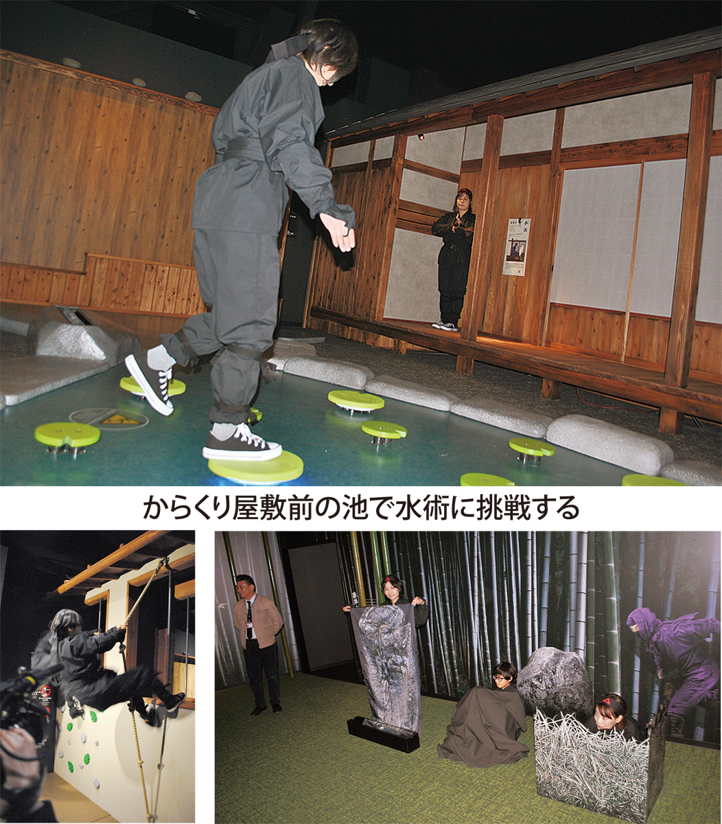 小田原城址公園の歴史見聞館が改修工事を終え、愛称「NINJA(ニンジャ)館」として4月20日(土)にオープンする。入場者は、関東一円に勢力を誇った北条氏を倒そうと迫り来る豊臣秀吉軍から、小田原城を守るために風魔忍者として「忍務」を遂行するというストーリー。館内の「からくり屋敷」には、忍び足で歩く廊下や隠し扉など仕掛けが満載。手裏剣を投げる様に体を動かし、大型スクリーンに映し出される敵を倒す体感型シアターも子どもの人気を集めそうだ。また、入館時に配られる「忍務カード」は4カ所でスタンプを集めると暗号になり、天守閣に届けるとオリジナルグッズがもらえる仕掛けも。