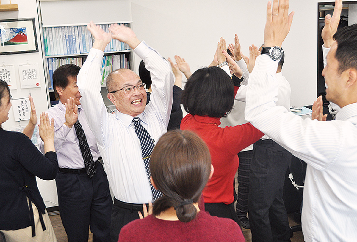 同社の朝はスタッフ同士のハイタッチで始まる。社員は定期的にプロのマッサージが受けられ、食生活改善の一環で小田原の無農薬米2kgが配られるなど、福利厚生が充実。地元の祭にあわせ休暇も取得できるなど働きやすい環境が評価された。
