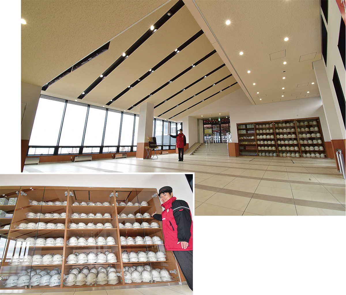 駅舎は火山活動時の避難場所として位置づけられており、増設により駅舎全体の収容人数は600人から800人になったほか、ヘルメットや酸素缶などの配備棚なども設けた。屋根は鉄骨などとともに、噴石対策として防弾チョッキにも使われるアラミド繊維で補強している。