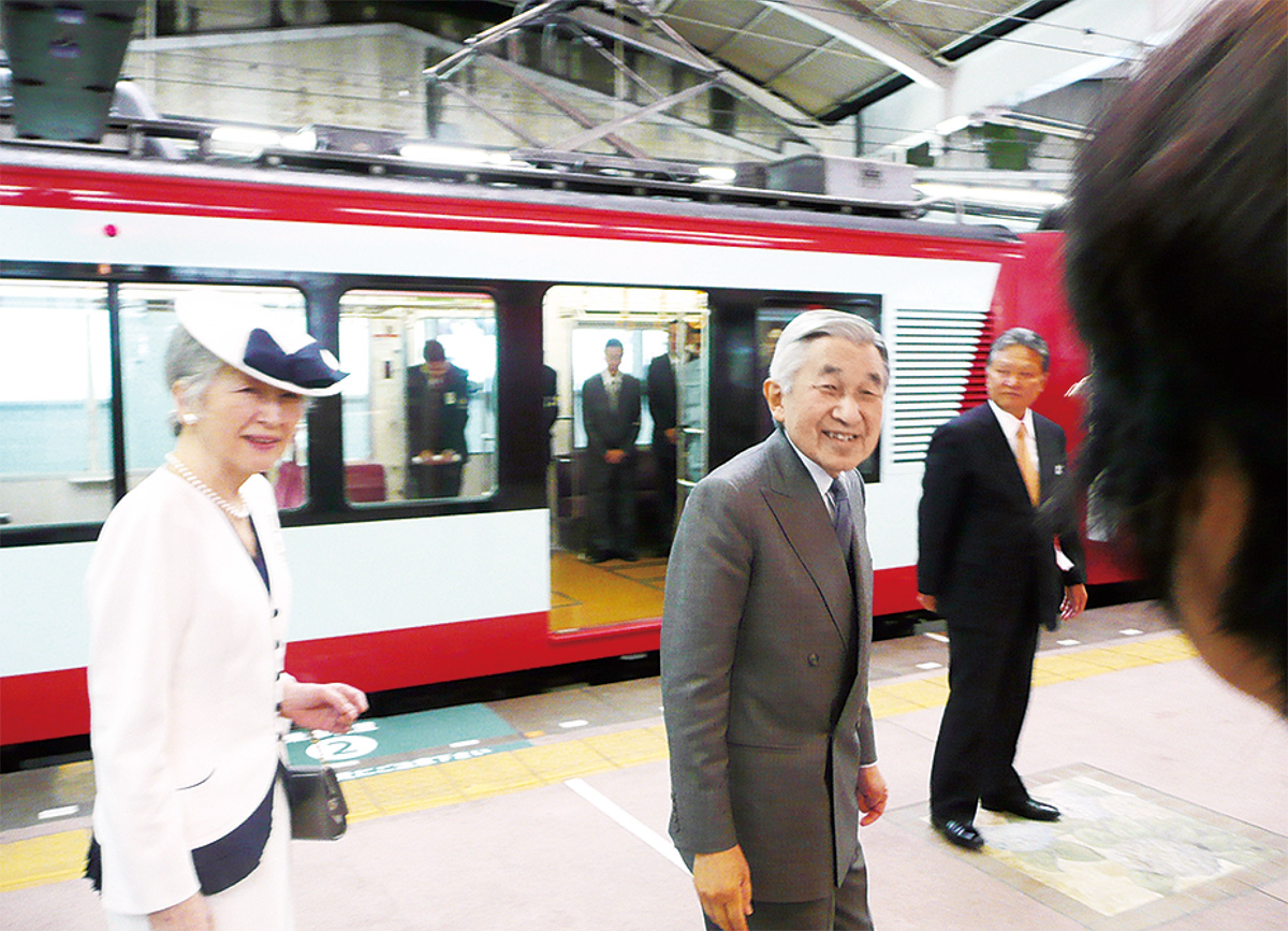 翌月には全国植樹祭の行程の一部で箱根町へ。湯本から強羅までの箱根登山鉄道が特別仕様になり、両陛下は湯本駅構内の観光客とも会話を交わされた。5月でも肌寒く、車掌だった佐藤知加志さんは空調の調整に細心の注意を払ったという。運転士の高橋秀明さんも車両が出来る限り揺れないよう、普段どおり定刻到着を心がけた。二人とも当時は30代の若手で「緊張しましたが光栄でした」「貴重な経験」と懐かしんだ。仙石原文化センターでの休憩時、寄木細工の湯呑みを手にした皇后陛下は「これはミズキですね」と材料をあてられたという。宮ノ下御用邸など皇室と箱根町とのゆかりも話題にあがった。同席した折橋尚道町議(当時議長)は「階段を降りる際に、天皇陛下が皇后陛下を気遣うように手をとられていたのが印象的」と話す。仙石原では箱根湿生花園を散策し、雅子さまのお印のハマナスがちょうど見ごろを迎えていた。説明に立った元町職員の高橋勉さんは皇后さまが皇太子妃時代にもご案内した事があり「あの時の方ですね」と当時を覚えておられたという。