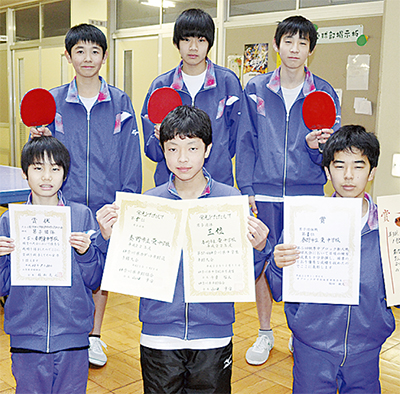 同校卓球部は、昨年12月に秦野市総合体育館で開催された「第57回神奈川県中学生卓球大会」で男子団体3位の成績を収め、関東への出場を決めた。メンバーは、横沢卓(たかし)部長と昨年11月に全日本卓球選手権カデットの部に出場した木村雅也さん、県カデット卓球選手権大会でベスト16の野呂憲史郎さん、加藤寿史(ひさし)さん、白井礼(まさし)さん、石渡祥貴さん(よしき)さんの2年生6人。