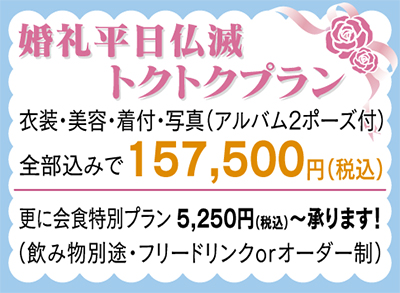 挙式ご成約の方には、披露宴後3万円の旅行券をプレゼント。