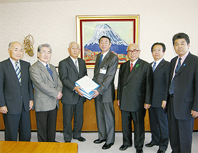 この要望書を提出した、日帰り入浴施設誘致推進協議会(岡部逸発起人代表)は、周辺の商業者や自治会、市民などに呼びかけ昨年12月に結成。東日本大震災の発生により、署名活動が困難な時期もあったものの、1万500人分の署名を集めることに成功。この日、古谷義幸市長に要望書とともに手渡した。