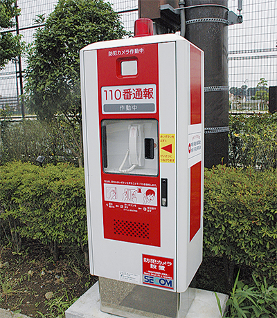 この装置は、事件事故が発生した時に、扉を開け受話器を取りボタンを押すと、赤色回転灯とサイレンが作動し、県警本部につながる仕組み。正面には防犯カメラが装備され周囲の監視も行われる。市が秦野警察署と協議し、多くの市民が利用する施設で事件事故が発生する可能性を考慮し同公園への設置を決定した。