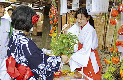 秦野の夏の風物詩のひとつ、出雲大社相模分祠の「ほおずき市 朝顔市」が7月8日から10日にかけ、同神社の境内で開催された。