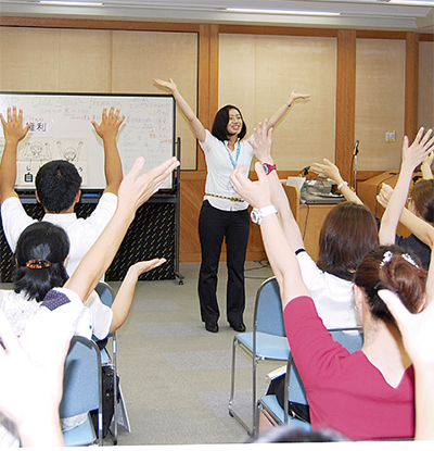 当日は約40人の教職員が参加。ワークショップでは教職員が小学5年生の生徒役になり、講師の「みんなはどんな時に安心するの」といった質問に答えながら、子どもの権利、虐待の早期発見などにについて学んでいった。