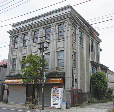 明治期に開業した同店は、生活雑貨を扱う卸問屋兼小売店だった。店舗は関東大震災後の1925年に2階建てで造立。1927年に3階を増築した際、古典主義的な洋風建築に改造された。店舗敷地内にはこの木造洋風3階建て店舗建築のほか、第1号から第5号までの倉庫がある。1989年には、「かながわの建築物100選」に指定された。